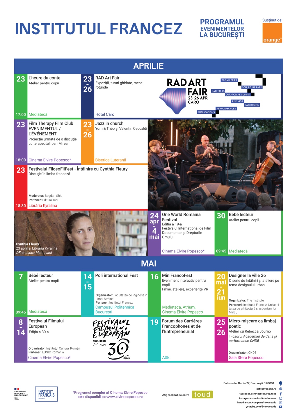 Va fi, de asemenea, un cadru motivant pentru a imagina viitorul bazându-ne pe un ecosistem foarte bogat, cu noi dinamici, acordând o atenție deosebită tineretului, creației noi, cercetării, schimburilor și angajamentelor societății civile. Institutul Francez din România (IFRo) este compus din patru filiale la București, Cluj, Iași și Timișoara.