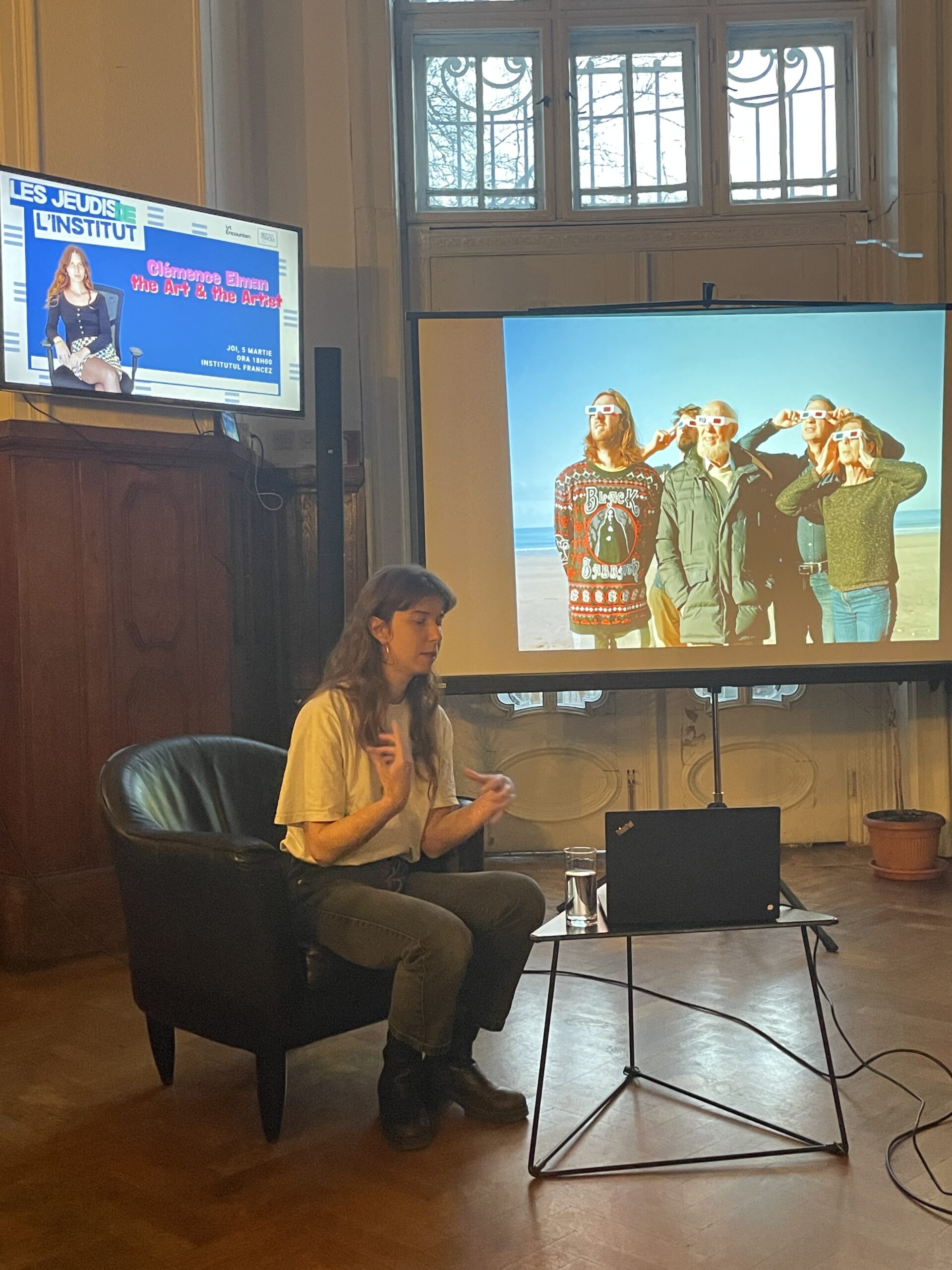 Les clichés in situ rejoignent un corpus d’images réalisées en studio en France, des archives photographiques ou filmiques du voyage, mais aussi d’une série de collages saugrenus initiés pendant la résidence. À partir des propres photographies prises par son père, Clémence Elman s’amuse des écarts entre leurs prises de vue. Touristiques pour l’un, esthétiques pour l’autre, brouillant les pistes et les conventions de genre. Fidèle à sa pratique, une narration visuelle émergera de cet ensemble iconographique, instable et hétéroclite. À la fois fictionnelle et documentaire, il sera augmenté de textes fragmentaires et commentaires rédigés par l’artiste, qui pourront donner lieu à une future publication.