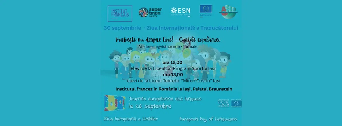 Institutul Francez din Romania la Iaşi, Asociația SUPER TINERI (ASIRYS), ESN – Erasmus Student Network Iasi și EUROPE Direct Iasi celebrează, din nou, împreună, Ziua Europeană a Limbilor