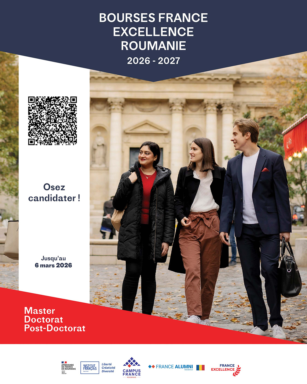 Vrei să afli mai multe informații despre bursele „France Excellence Roumanie”? Poți participa joi, 26 februarie 2026, la ora 17:00, la o sesiune de informare și prezentare la Institut fra