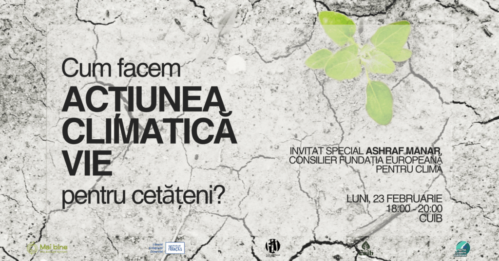 În cadrul Forumului Inițiativelor Tinerilor de anul acesta, Institutul Francez din România la Iași, in parteneriat cu Mai bine , vӑ invitӑ luni, 23 februarie, ora 18.00, la CUIB, la atelierul public „Cum facem acțiunea climatică vie”, cu participarea lui Ashraf Manar, expert în politici climatice europene și procese de guvernanță participativă.